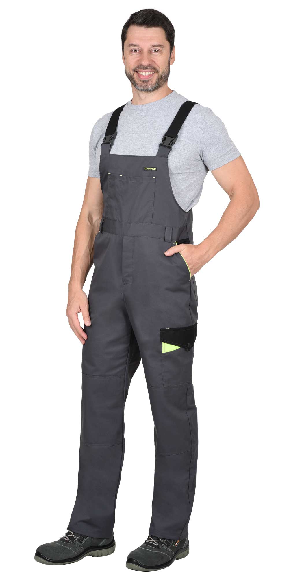 00853 Полукомбинезон "ХОВАРД" : темно-серый с черной и лимонной отд. (ЧЗ)