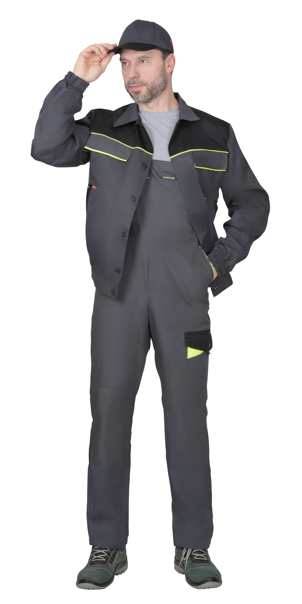 - 00853 Полукомбинезон "ХОВАРД" : темно-серый с черной и лимонной отд. (ЧЗ)