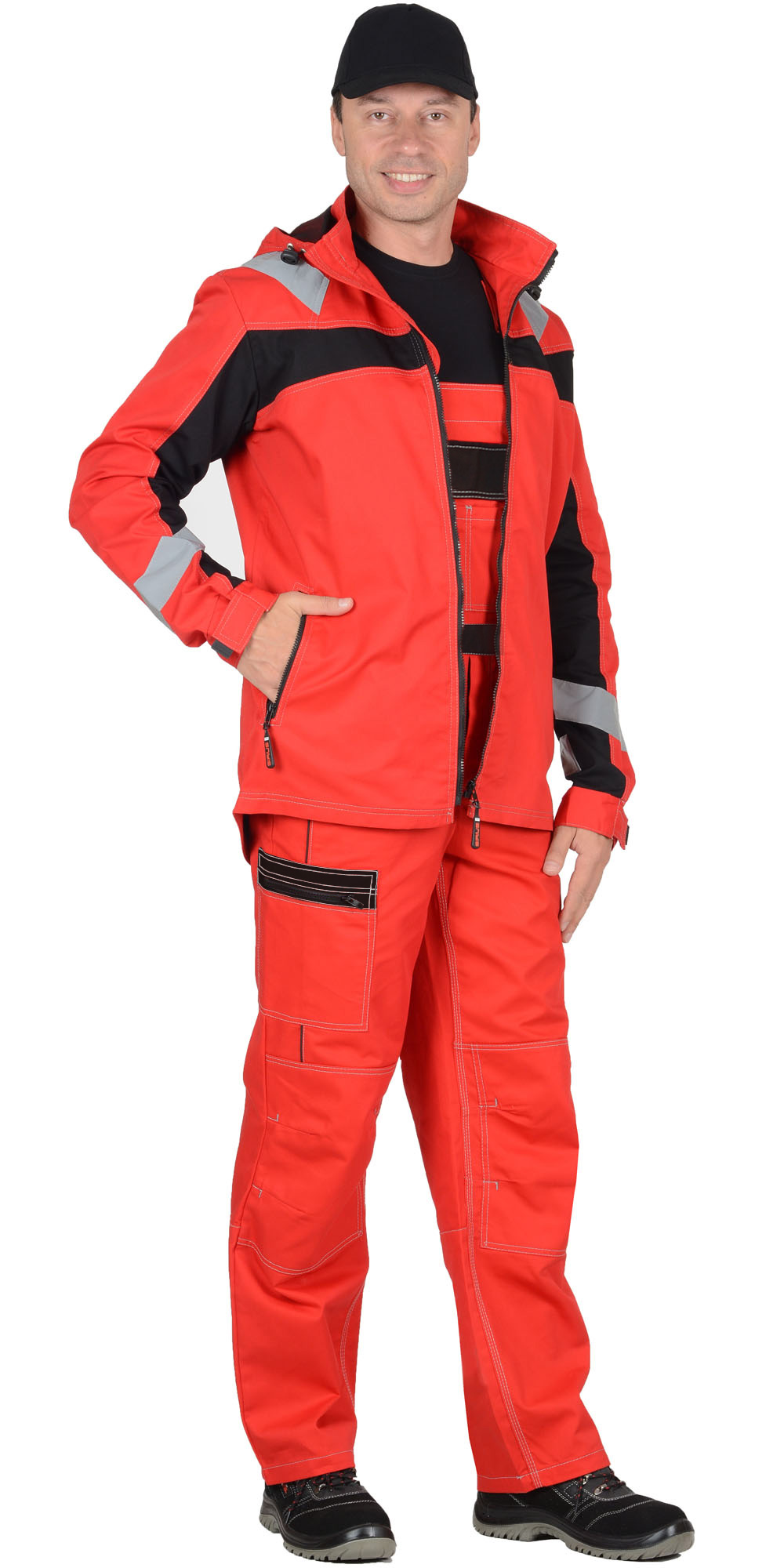 01389 Куртка "Сидней" красная с черным и СОП тк.Rodos (245 гр/кв.м) (ЧЗ)