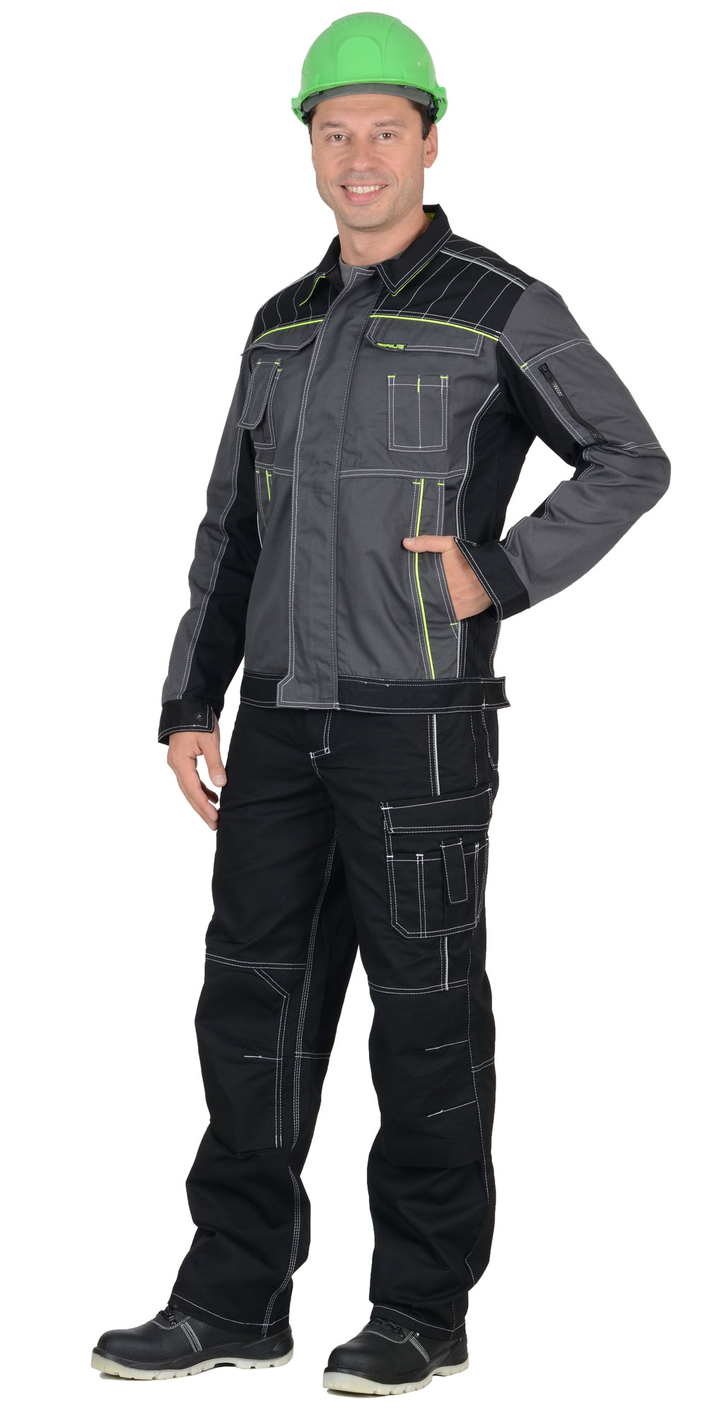 - 01494 Куртка "Престиж" кор.,летняя темно-серая с лимонным кантом тк.Rodos (245 гр/кв.м) (ЧЗ)