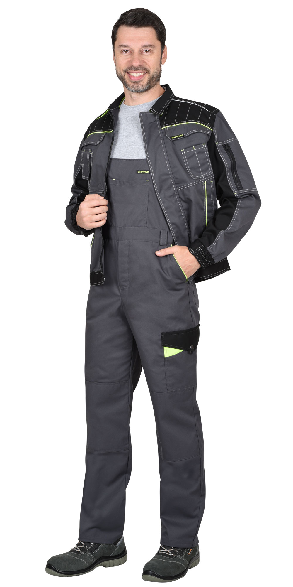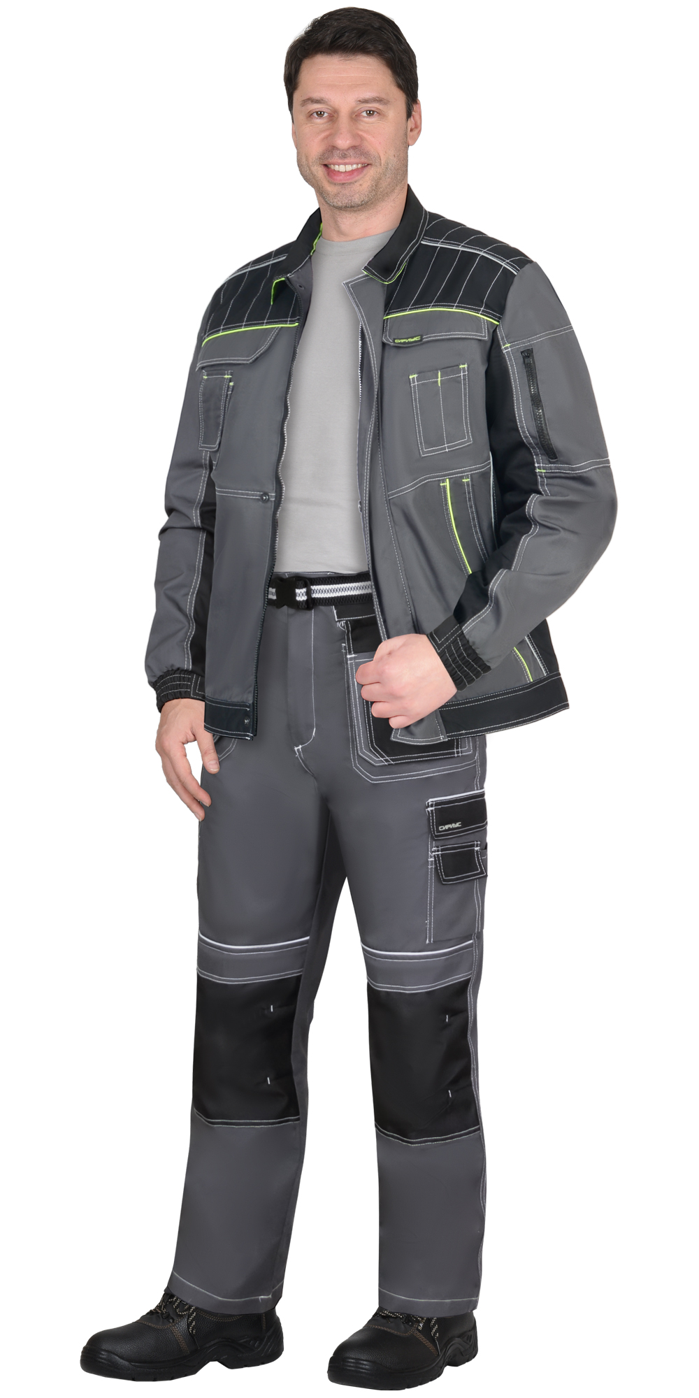 01494 Куртка "Престиж" кор.,летняя темно-серая с лимонным кантом тк.Rodos (245 гр/кв.м) (ЧЗ)