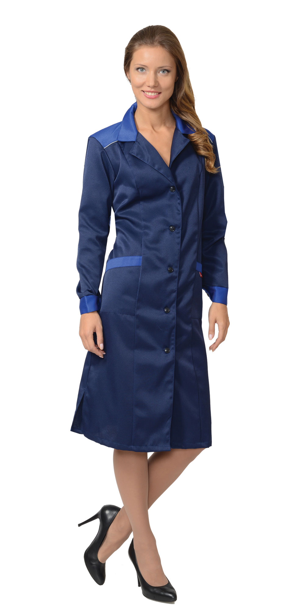 - 03588 Халат "ТЕХНОЛОГ" женский (тк. смесовая) синий с васильковым (ЧЗ)