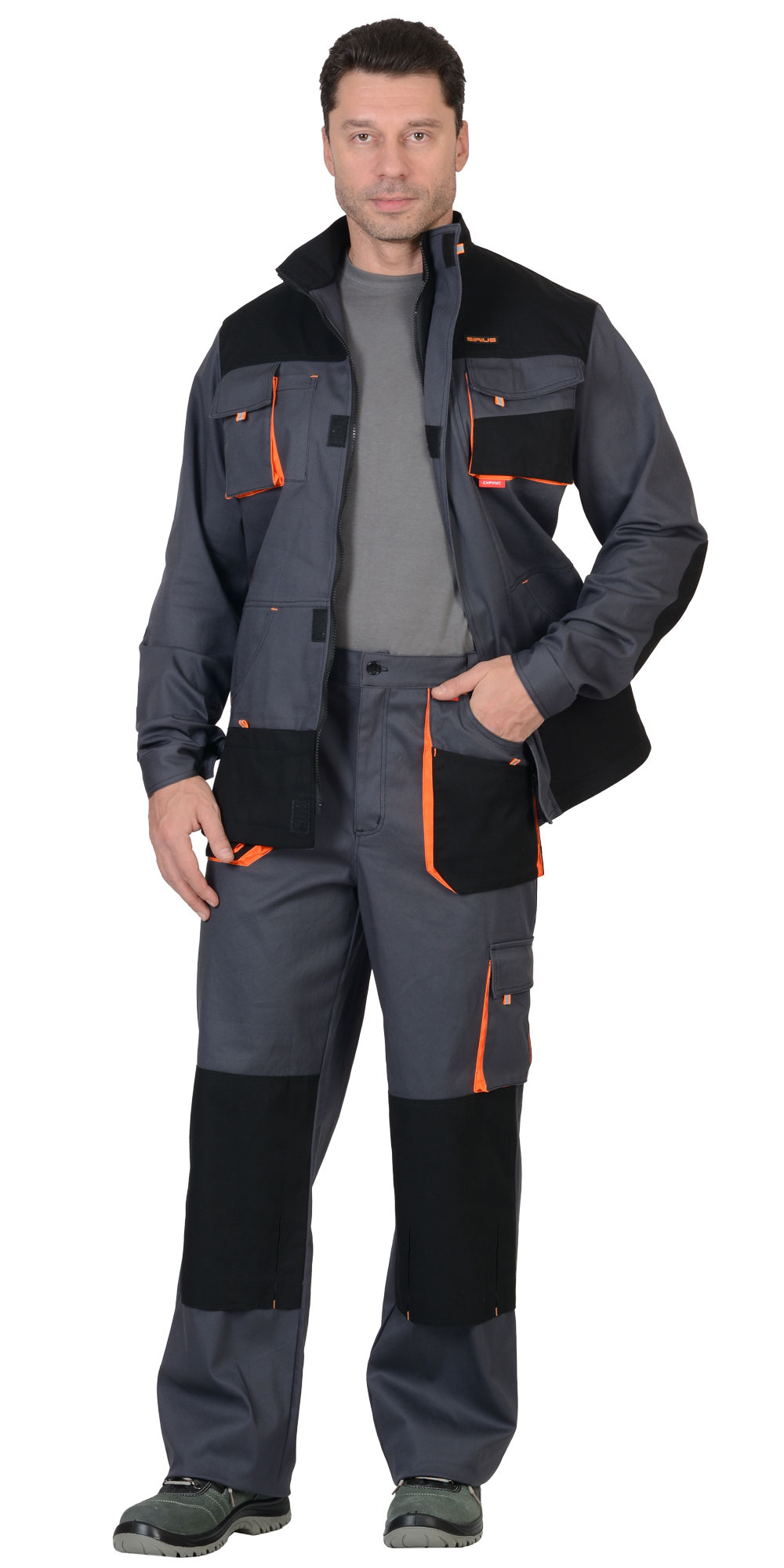- 100372 Брюки "МАНХЕТТЕН" т.серые с оранжевым и черным (ЧЗ)