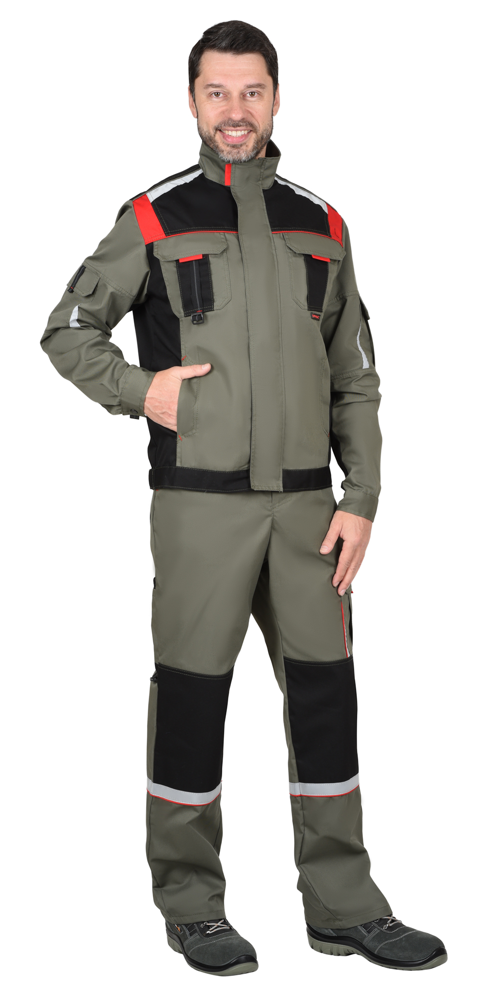 112647 Куртка "СТАН" оливковая с черным и красным (ЧЗ)