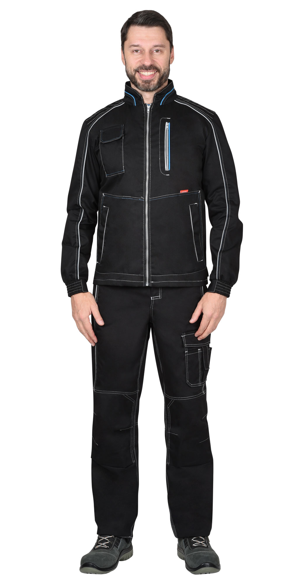 119024 Куртка "АЛЕКС" летняя мужская черная с голубой отделкой (ЧЗ)
