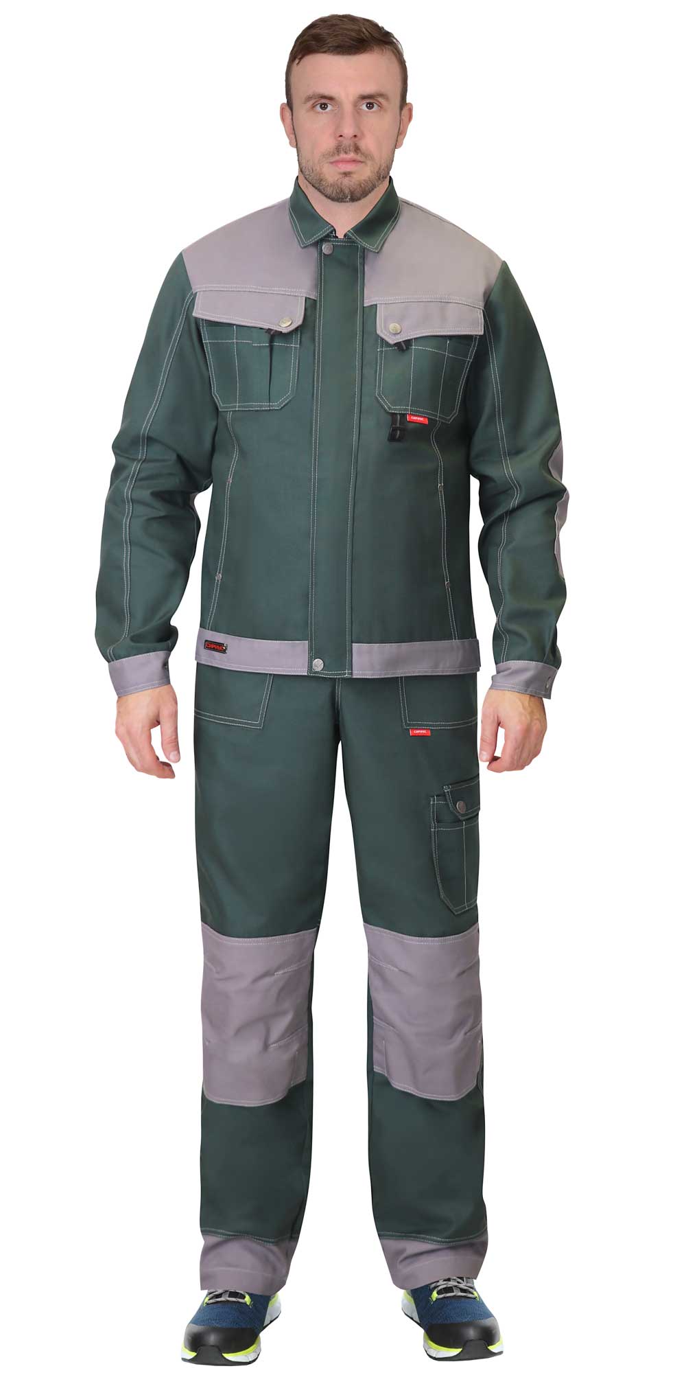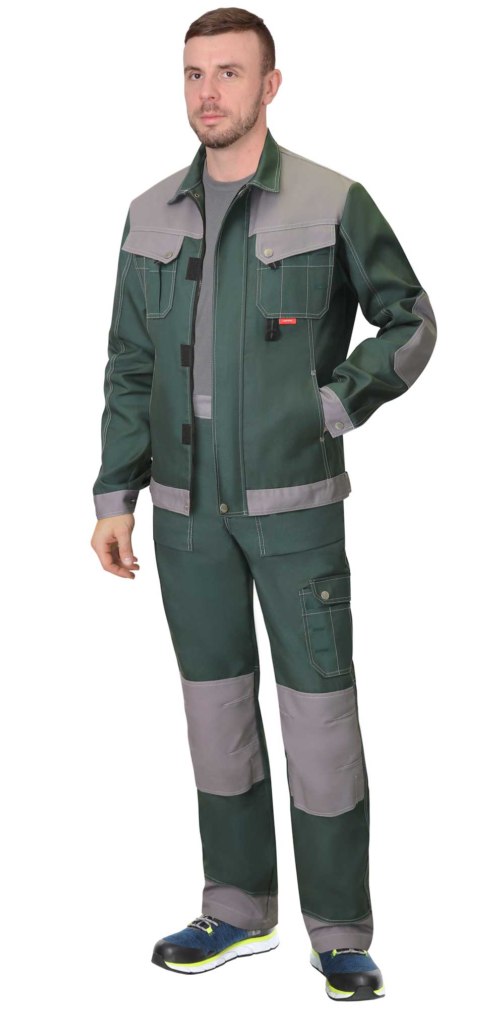- 142670 Куртка "ВЕСТ-ВОРК" короткая зеленая со ср.серым (ЧЗ)