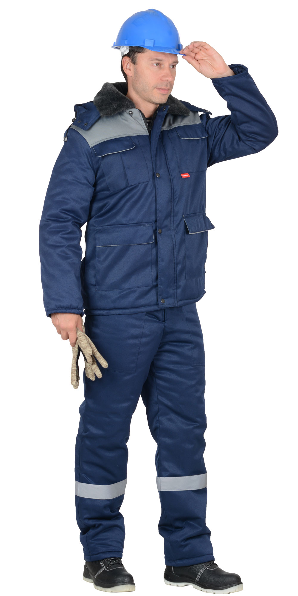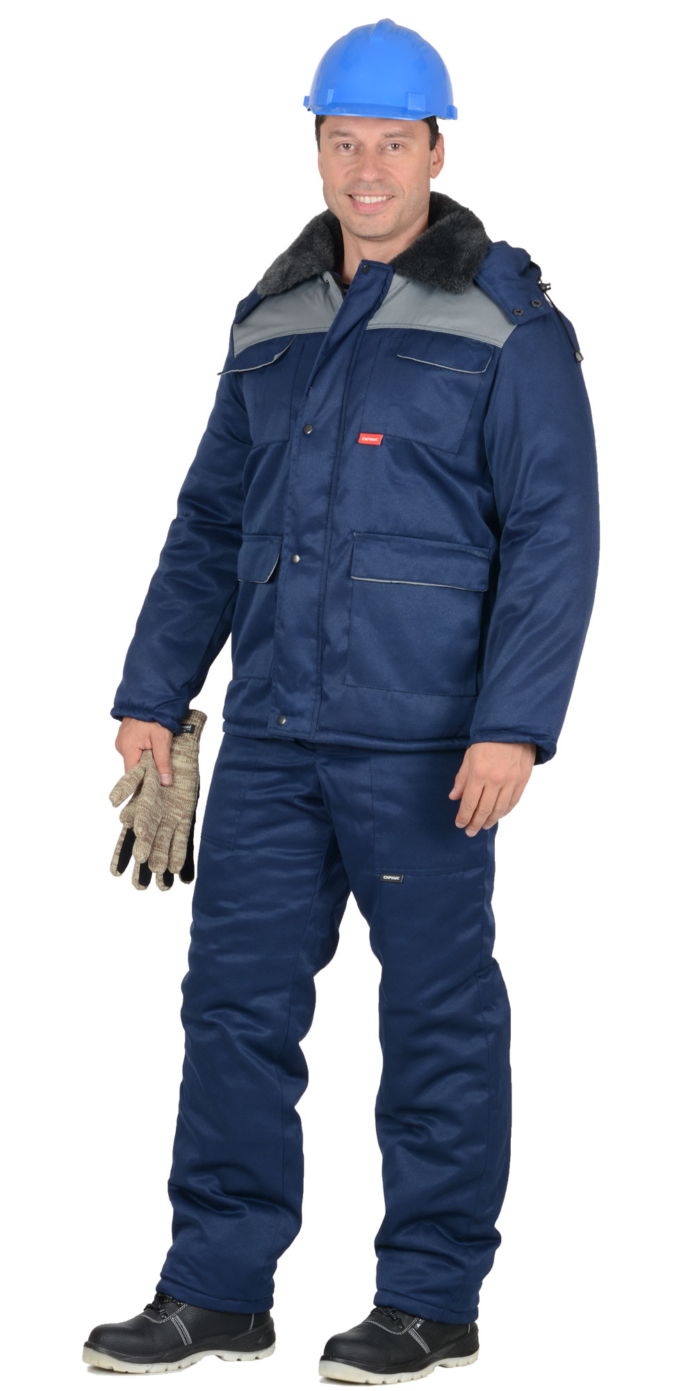 06865 Куртка "ПРОФЕССИОНАЛ" дл.,зимняя тёмно-синяя с серым (ЧЗ) тк. Гретта